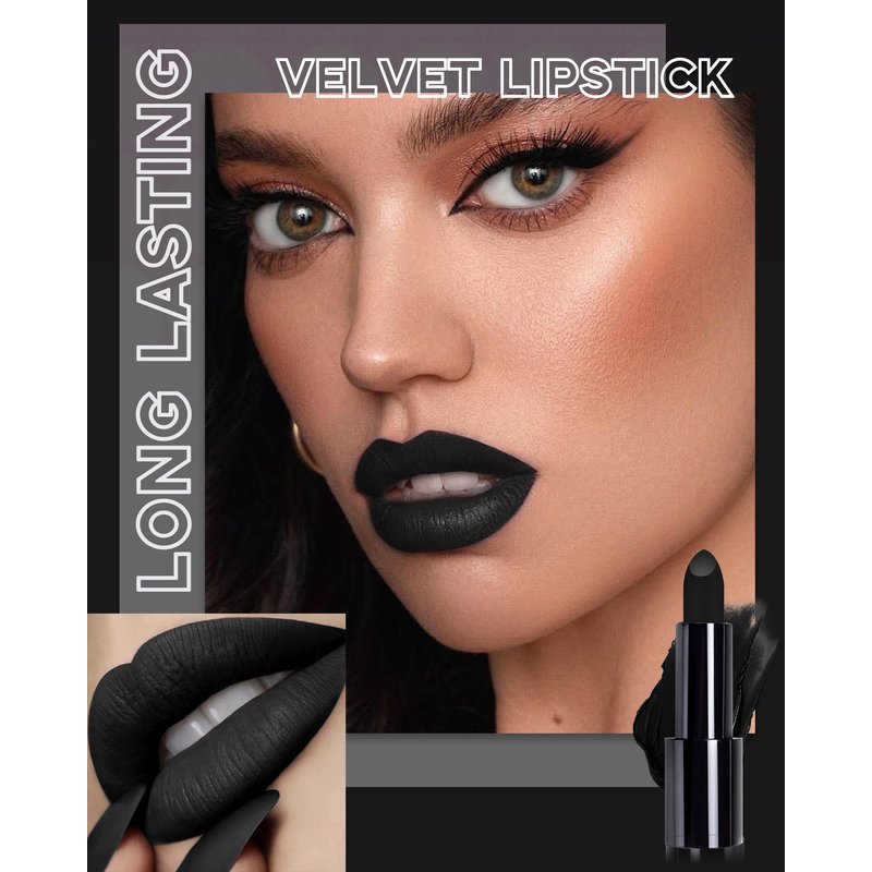 Black Halloween Lipstick Long Lasting for Women, Hydrating Matte Velvet Lip Gloss Superstay Liquid Lipstick Intense Color Non Stick Smudge-Proof & Waterproof Lipgloss Goth Lip Stick Makeup-05