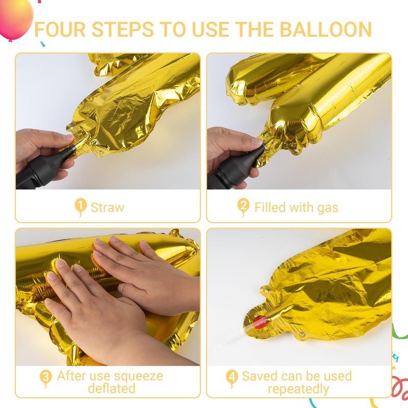 - High Quality Foil Balloon: High quality banners are crafted with premium high quality balloons, crafted with a durable, ultra-shiny aluminum foil that maintains form without leaking or losing air. Smart, reusable design, easy to inflate, hang or stick.