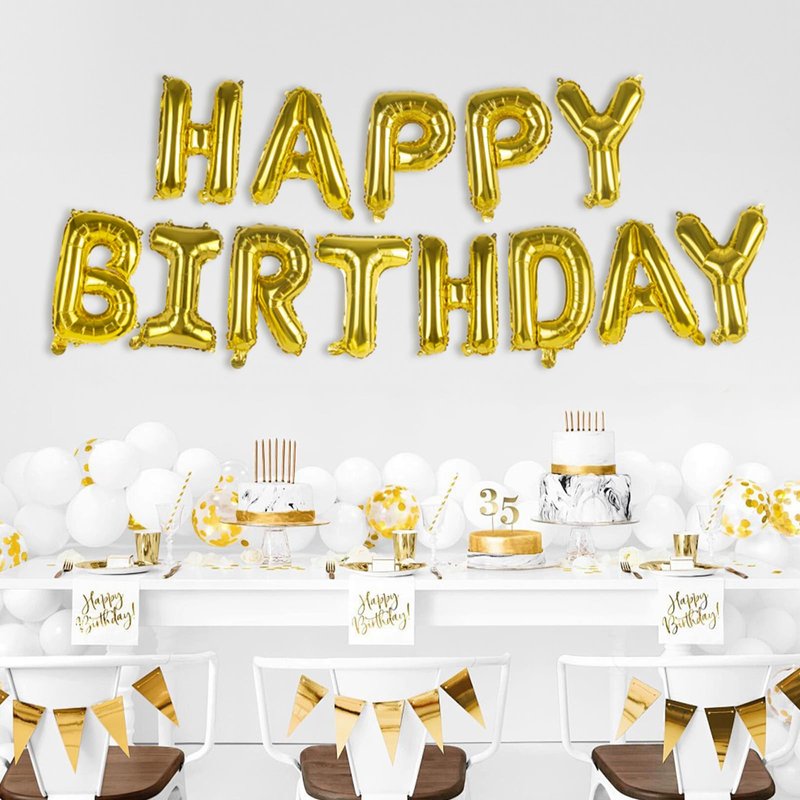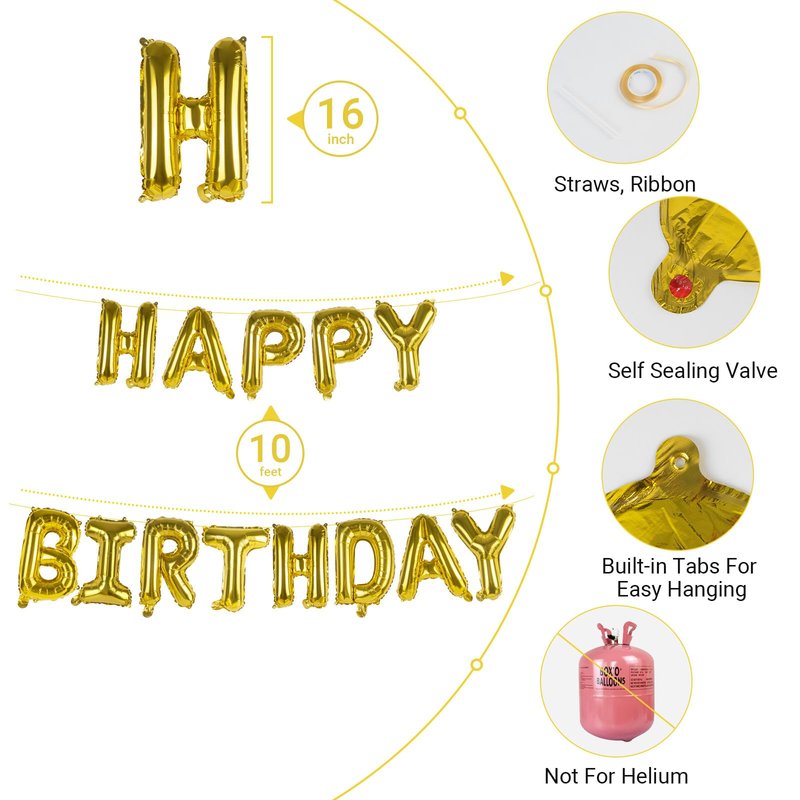 - Large Happy Birthday Balloon Banner Decorations: Designed with Giant 16inch shiny aluminum foil inflatable letter, celebrate special moments and build great memories with your kids, family and friends. Provide surprise party for your loved or decorating your child birthday party.