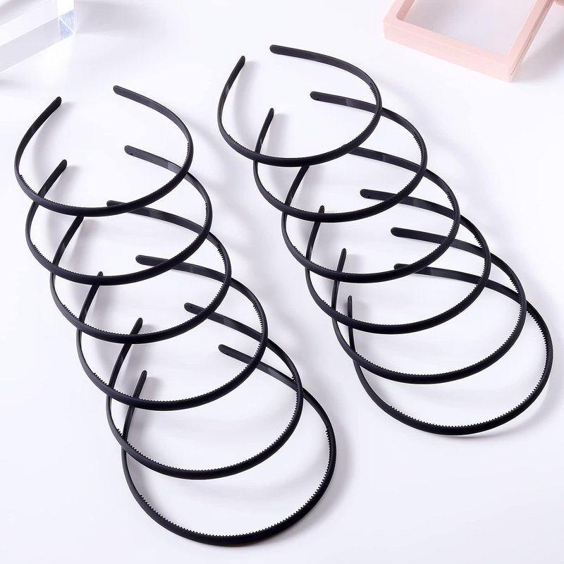 Black Headbands for Girls 12Pcs DIY Craft Head Bands Hard Thin Headband Rubber Plastic Hairbands for Kids Teens Party Favors