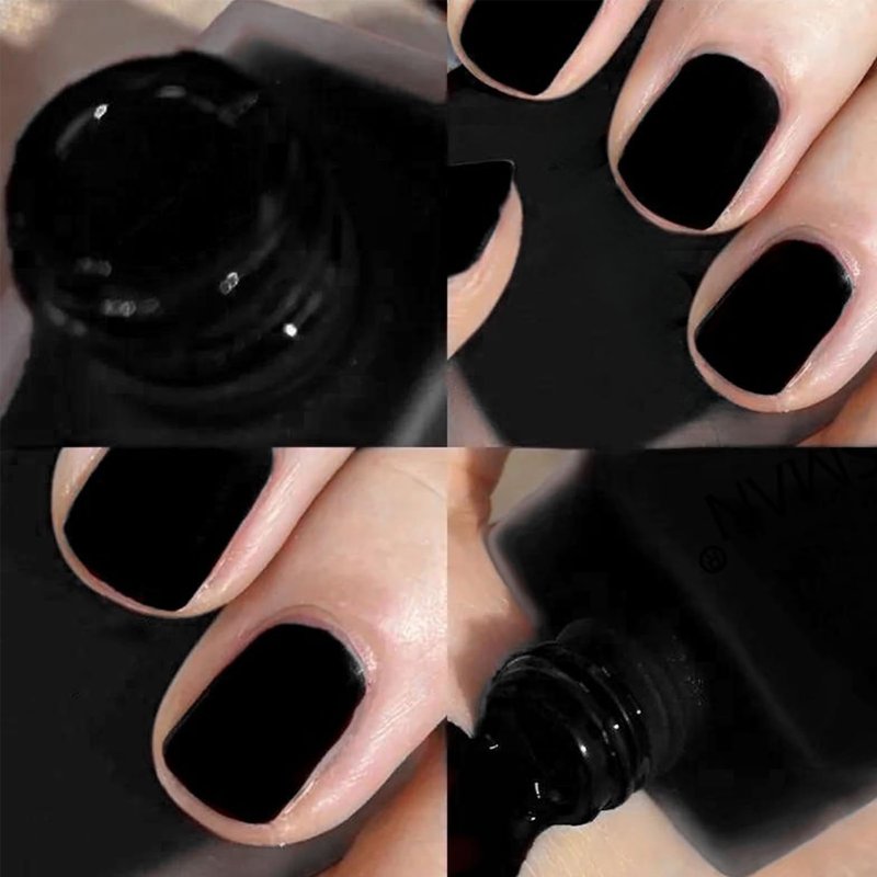 - ❤【Black Nail Polish Fast Dry】our black gel nail polish without UV light needed would be natually dried in 60-120s for each layer. It would be very lighweight and charming with just this black polish