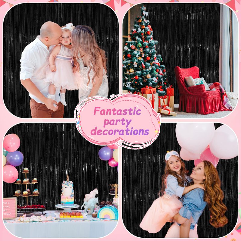 2PCS Black Streamers Engagement, New Year, Baby Shower, Birthday, Bachelorette Party, Summer Party, Baptism, Eather, Chrithmas, Graduation, Homecoming, Anniversary, Cinco de Mayo, Birthday, Thanksgiving, Gender Reveal, Mother's Day, Bridal Shower, Engagement, Wedding, New Year, Bachelor Party, Baby Shower, Veteran's Day, Independence Day, Halloween, Retirement, Valentine's Day , Photo Shoot, Wedding, Anniversary 3.3x8.3Ft Foil Fringe Backdrop Curtains Tinsel Streamers Birthday Party Decorations Fringe for Graduation Wedding, Baby Shower Disco Party Party Door Anniversary Streamers Party Decorartions