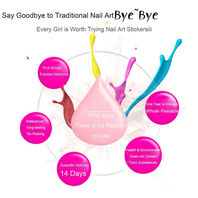 Our nail polish strips are adhesive, easy to use without hurting your natural nails, just paste the decal you like on the surface of your toe nails, convenient to stick or peel off, time-saving, suitable for home DIY nail art.