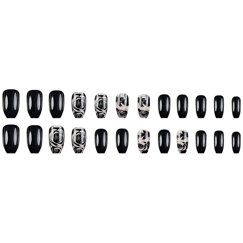 - 【Package Content】You will get 24 pieces of medium black press on nails with 12 different sizes, you can choose the most suitable medium rose false nails for yourself, it is easy to trim and file them to in any length and shape you like.