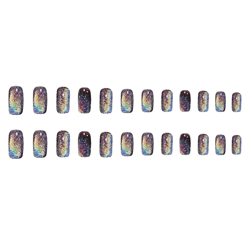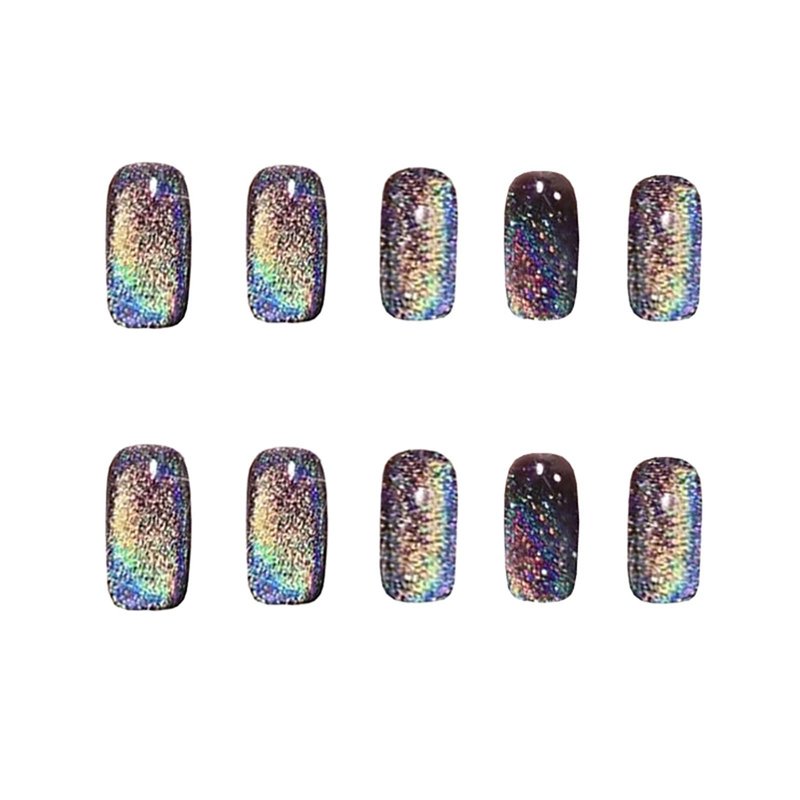 - 【Unique nail art design】The unique design of these fake nails is a stylish squre black cat eye fake nail.