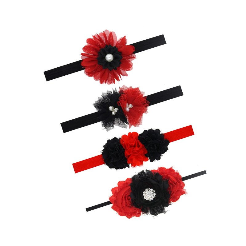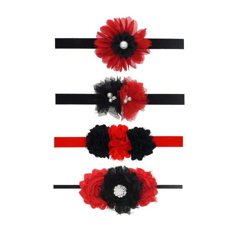 Black Red Flower Headband for Baby Girls Black Flower Red Hair Band Headdress JBC17 (4 Pcs-Set)