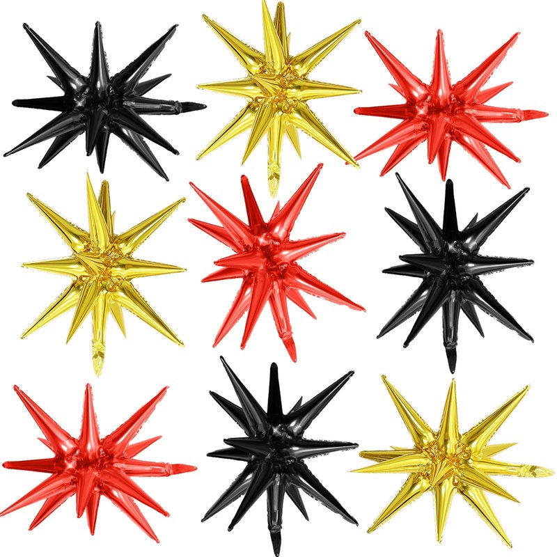 - Black Red Gold Star Balloons Set:Package include 9pcs 22Inch explosion star balloons(black x 3,red x 3,gold x 3).Large enough to help you better decorate your party.