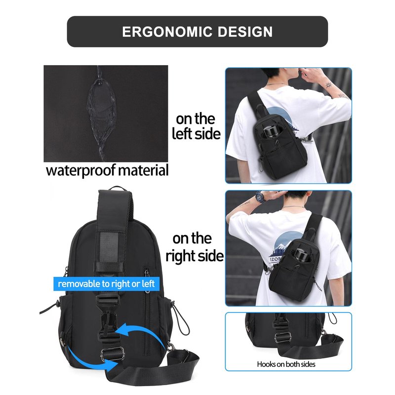 2.unisex black sling backpack bag can be used as chest bag, sling bag, travel bag, cross body backpack,