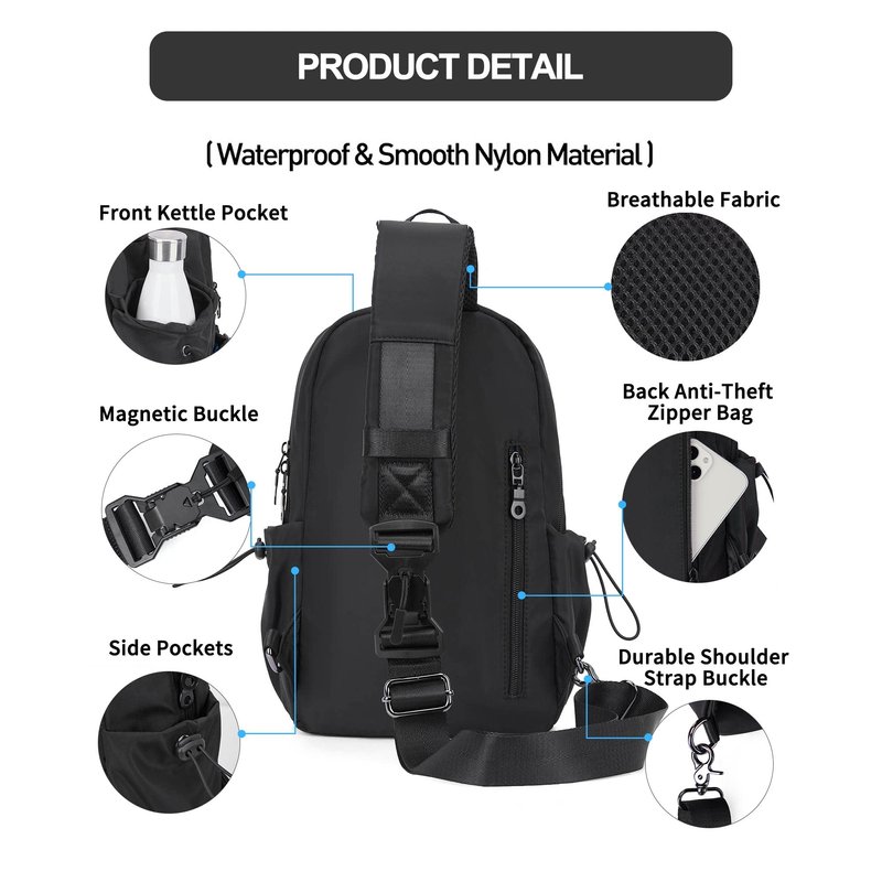 - ✅【High Quality Material】Shoulder bag for men women is made of high-quality nylon, waterproof, dirt-resistant, lighter and more easy to take care of. Shoulder backpack with excellent workmanship can show your outstanding temperament. Lightweight crossbody backpack bags sits nicely and freely on your back/chest and if this hiking bags for men gets durty, only just need wipe it off to stay it clean.