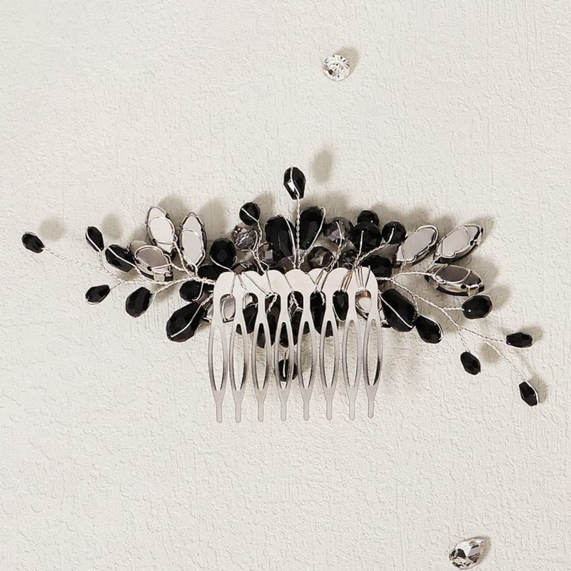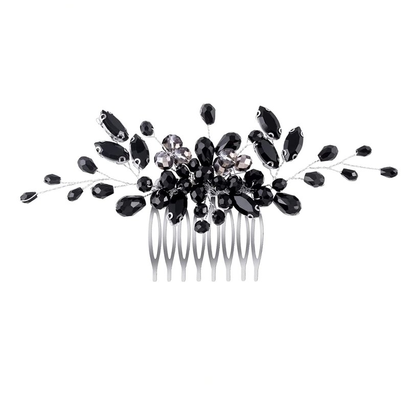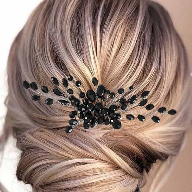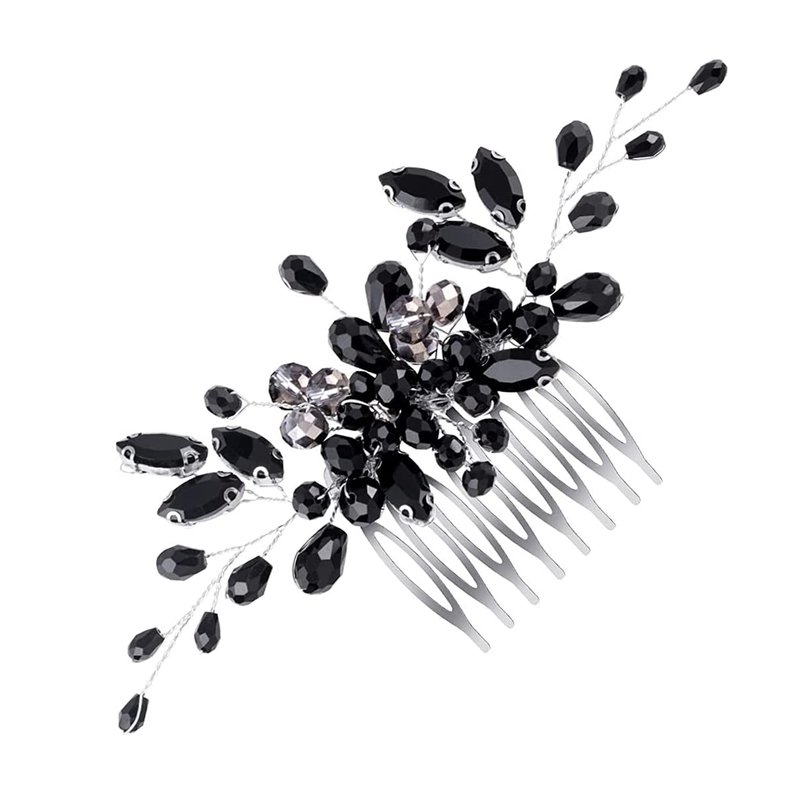 Black Teardrop Hair Side Comb Crystal Hair Pieces Rhinestone Headpieces Bride Wedding Hair Comb Bridal Hair Clip Side Combs Flower Headdress Hair Accessories for Women and Girls