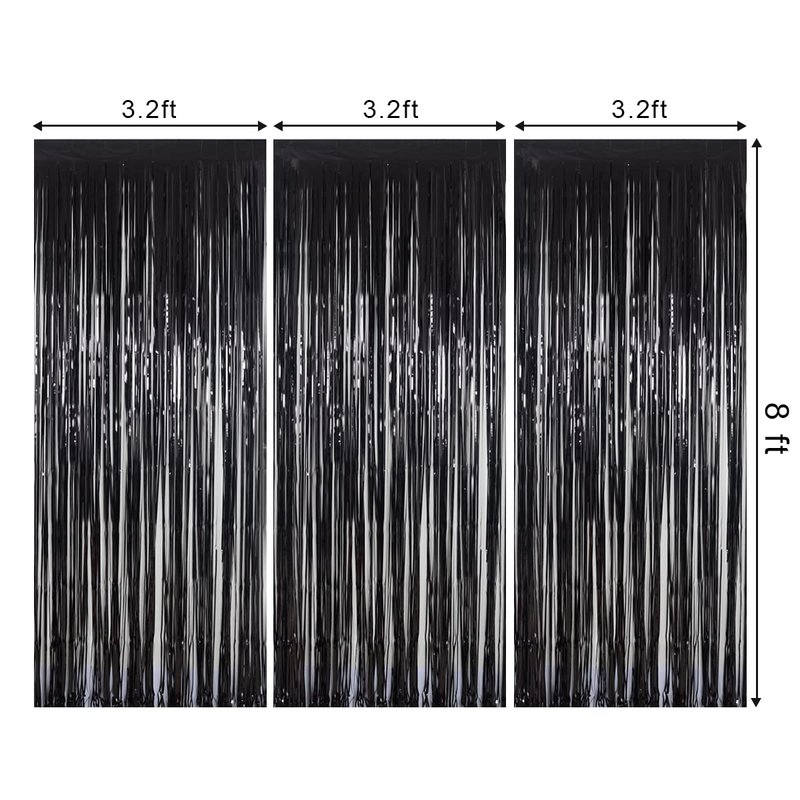 - Value Pack of 3: Includes 3 packs black foil fringe curtains, enough to decorate your party backdrop and save your money. Each curtain is 3.2ft x 8ft. You can use 2 packs of the curtains side by side to make the backdrop larger, or overlap 2 pack of curtains to achieve a fuller and better look.