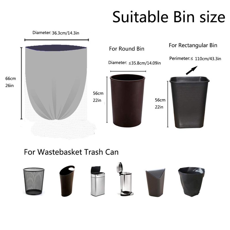 - Measurement: Width:22.4 inches,Height:25.9 inches;8 gallon trash bag fit medium size trash can: round wastebaskets with diameter ≤ 14.09”, height ≤ 22”, rectangular or other garbage bins with perimeter≤43.3”,height≤22”