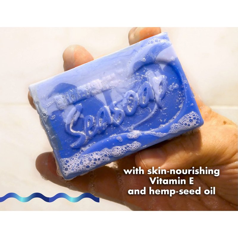 Our nutrient-rich mens luxury bar soap not only reinvigorates and moisturizes your skin, it even looks like the sea itself – with its lush cerulean blue and white swirls, Seasoap transports you to your favorite sandy beach and stimulates your senses with its bracing ocean breeze scent.