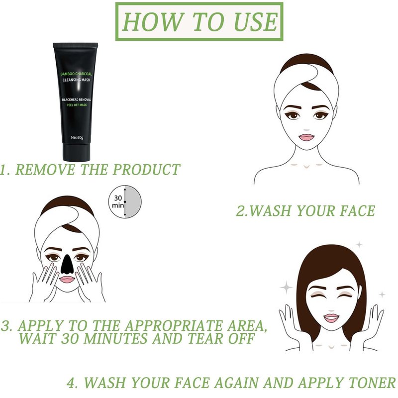 - 🎁【Usage】1. Wash your face first, using a hot towel on your face will quickly help open your pores and keep the area where you need to remove blackheads moist. 2. Squeeze out the product and apply it to the area you want to apply. Wait 10-20 minutes until the mask becomes dry. 3. Gently peel off the mask from top to bottom, wash your face with water and apply toner or water lotion. (Recommended to use 1-2 times a week)