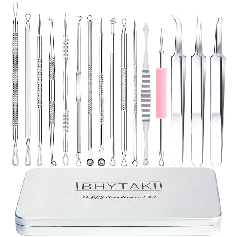 Our blackhead removal tool kit contains very sharp pointed needles, tweezers, oval rings, curved needles, circular rings, triangular rings, etc, it has every tool you could want/need to take care of acne.