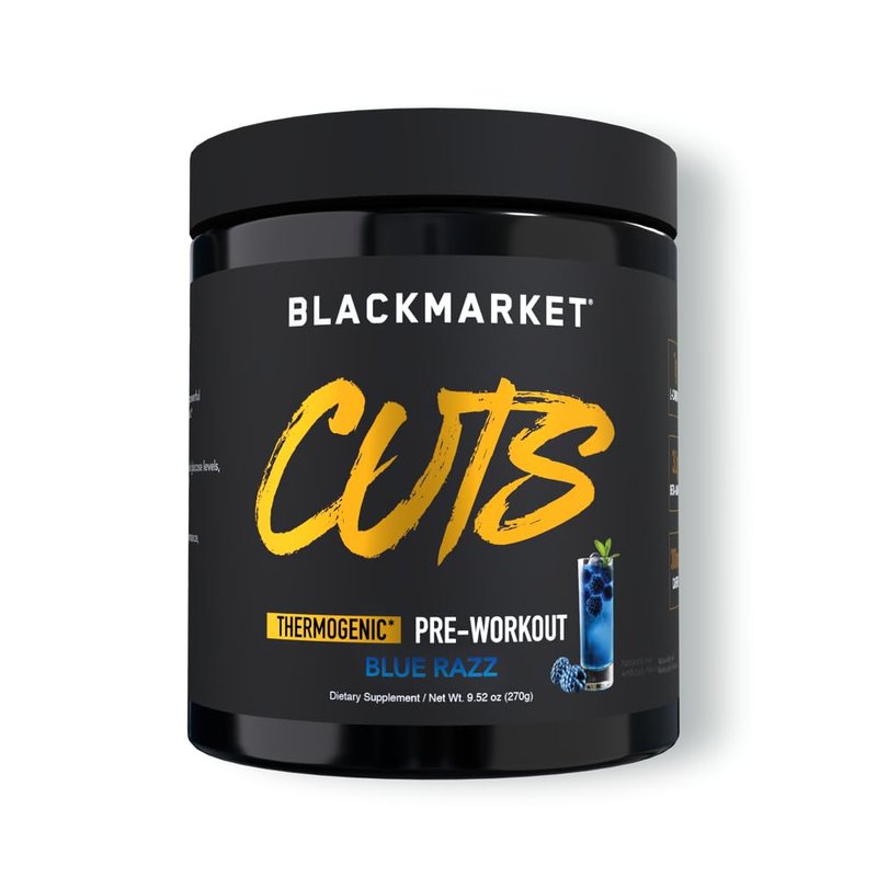 BLACKMARKET CUTS Pre Workout - Flavored Energy Powdered Drink Mix for Men & Women, Great for Muscle Definition, Thermogenic, Creatine Free, (Blue Razz, 30 Servings)