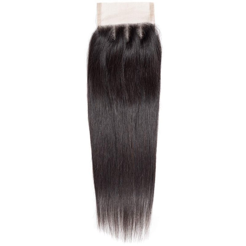 - Hair Texture: Silky Straight bunldes with three part lace closure.