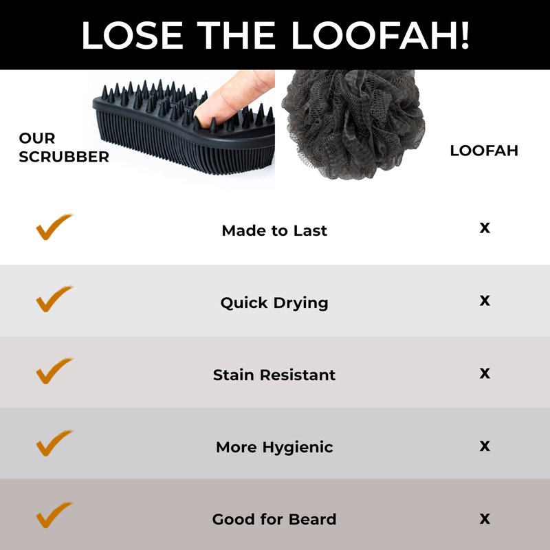 - LOSE THE LOOFAH: Get more with this dual purpose, must-have men's shower tool that's cleaner, easier to use, more versatile, more sustainable & most importantly, more effective. Our men's body scrubber is made with food-grade BPA-Free silicone for a more hygienic clean.