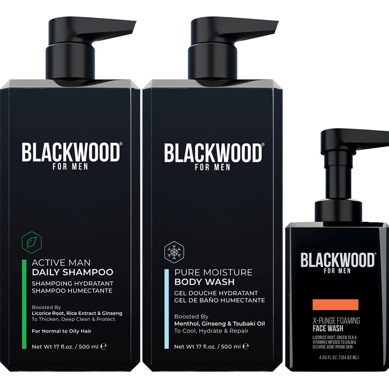 BLACKWOOD FOR MEN Dad Recovery Set including Active Men Shampoo, Pure Moisture Body Wash, X-Punge Foaming Face Wash