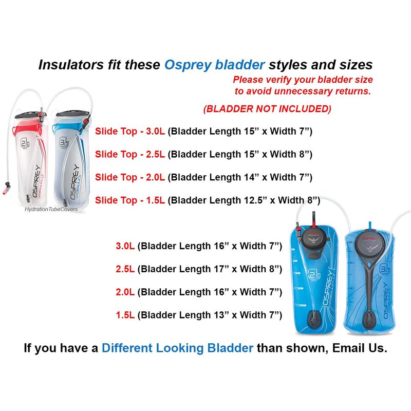 Bladder Insulators will help insulate your hydration backpack water bladder – reservoir. These bladder insulators are compatible with Osprey Hydraulics water bladder reservoirs to provide insulation against harsh weather elements.