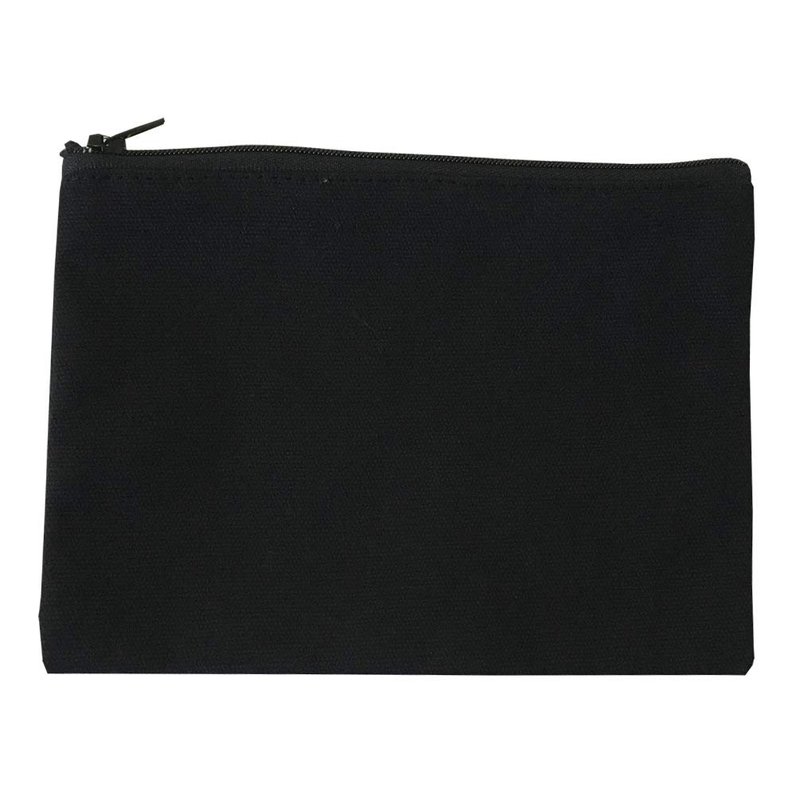 Blank Black 100% Cotton Canvas Makeup Bag With Zipper 9x6 Cosmetic Pouch Bulk - Single