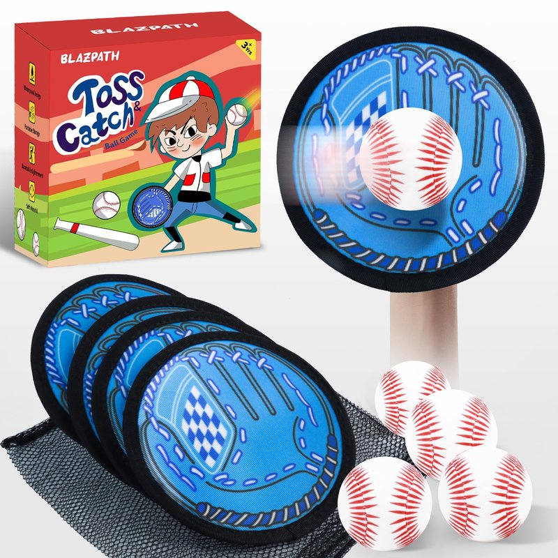 BLAZPATH Soft Velcro Ball Toss and Catch Game Set for Kids 3 4 5 6, Toddler Velcro Paddle Sticky Baseball Glove Mitt, Beginner Training Play Catching Throw Sports Toys for Outdoor/Indoor/Beach