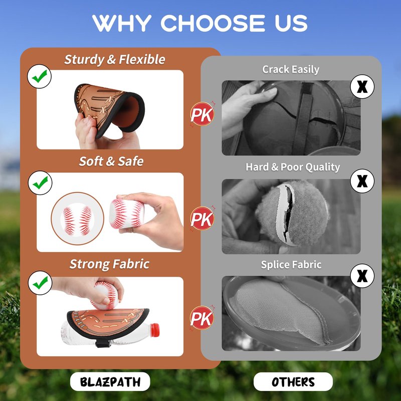 - Soft Sticky Baseball: Sticky baseballs are filled with soft material, not only keep toddlers’ bodies more safer while playing, but also reduces hand tiredness for training longer
