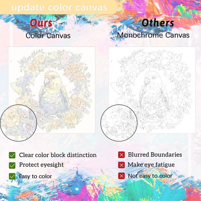 - Quality Materials: Acrylic paints are ready to use after opening, long lasting color and strong coverage. Linen pre-printed canvas, HD printing technology makes the picture more clear, can effectively reduce eye fatigue, easy to store after drying