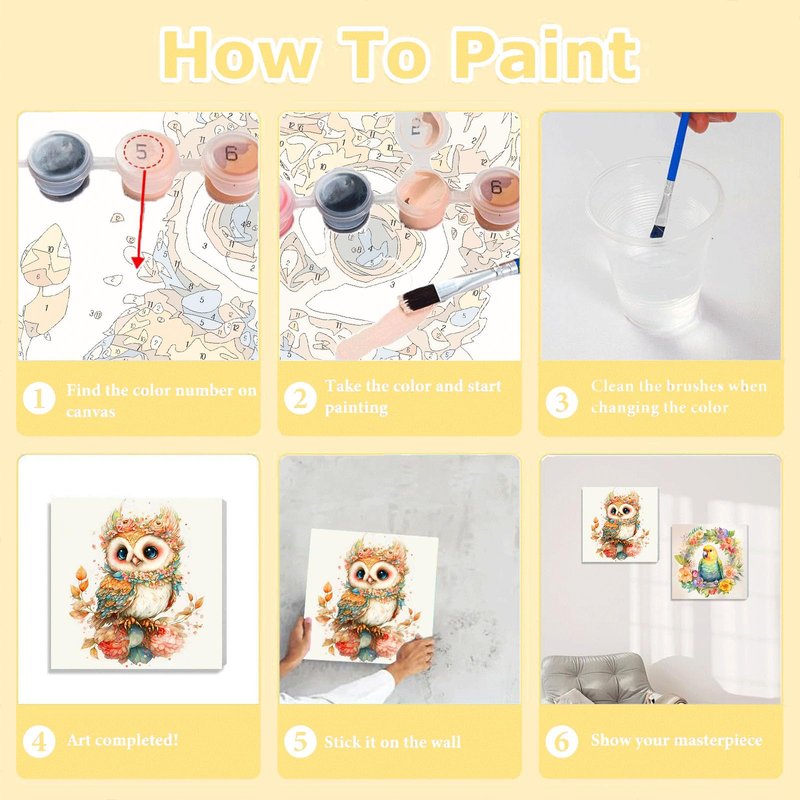 - Easy to Do: No special skills required, easy to understand number symbols are printed on the canvas, just pick up the paintbrush and apply the corresponding number paint on the canvas. Kids number paint set can improve kids' hands-on painting skills