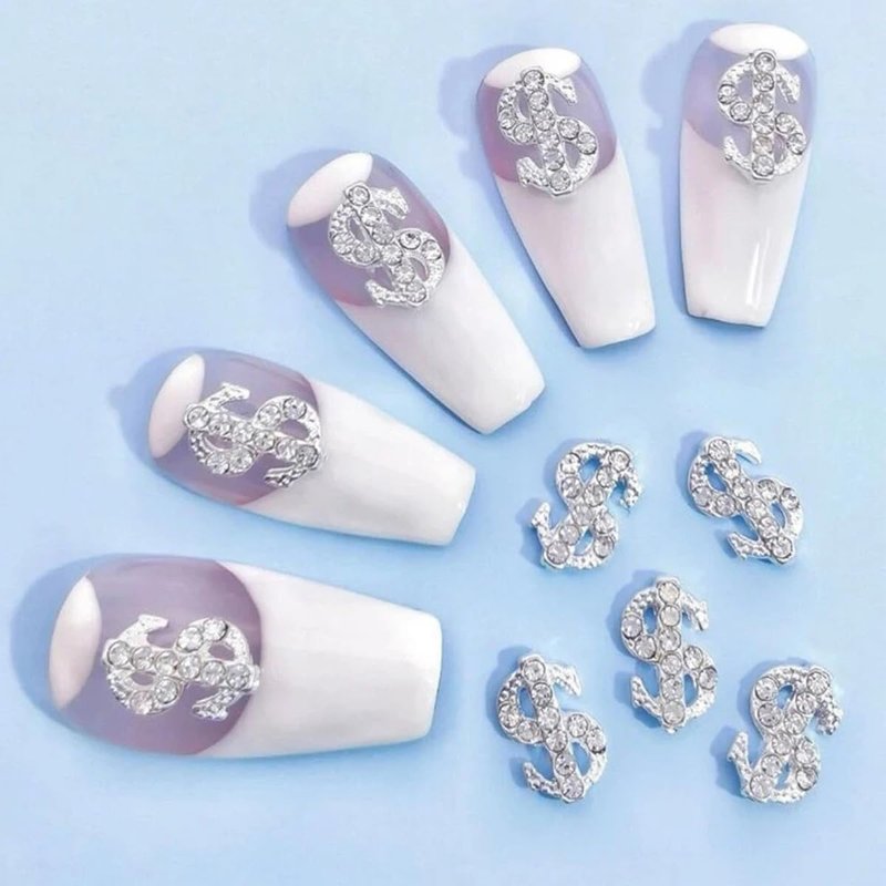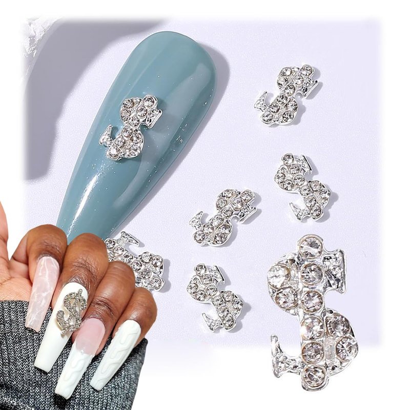 - Health Safety: Luxury dollar dign nail charms are made of alloy and artificial rhinestones, they are hard and not easily break,no damage to fingernails, any style of nails can use it.