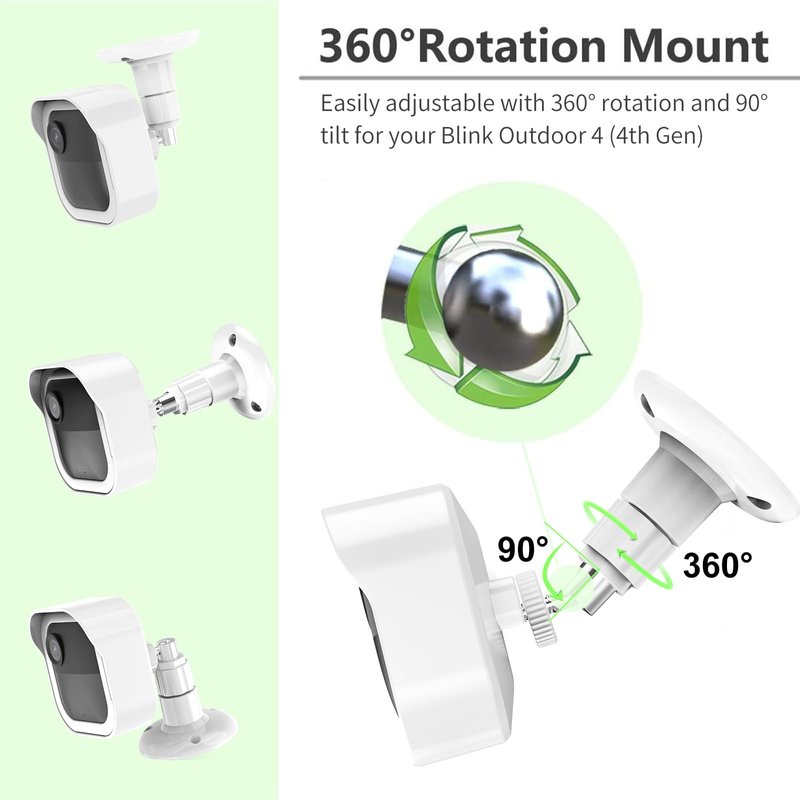 - 【Blink Outdoor Camera Mounts】Features with 360 Degree swivel and 90 Degree tilt, the Blink mount helps you freely experience in camera positioning. With screw-fixing base, it is stable enough to hold the blink security camera.