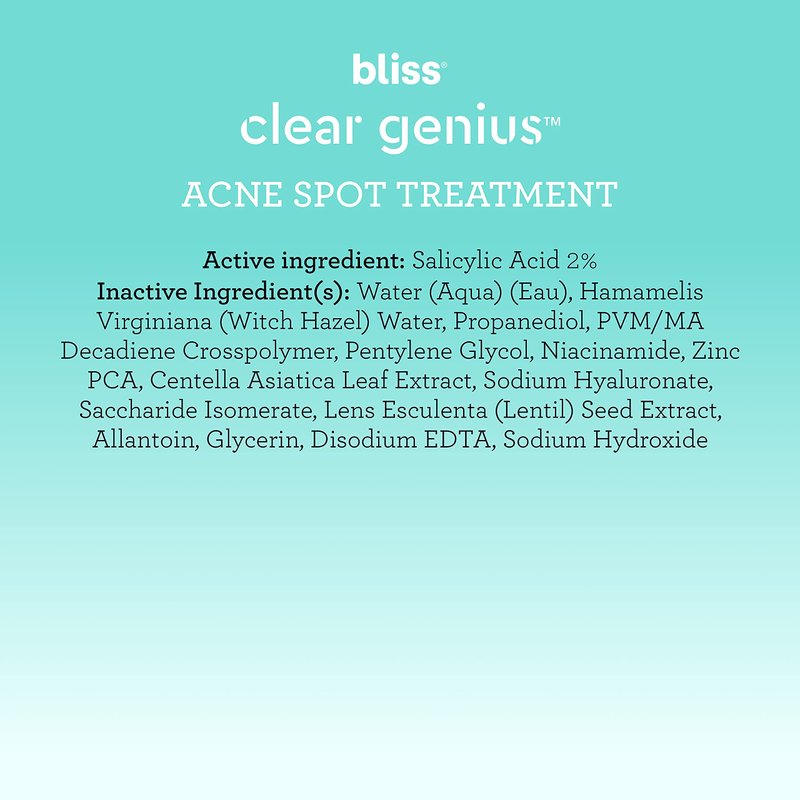 Bliss Clear Genius Acne Spot Treatment – Maximum Strength 2% Salicylic Acid Shrinks Blemishes – Clean, Vegan, Cruelty-Free, 0.5 Fl Oz