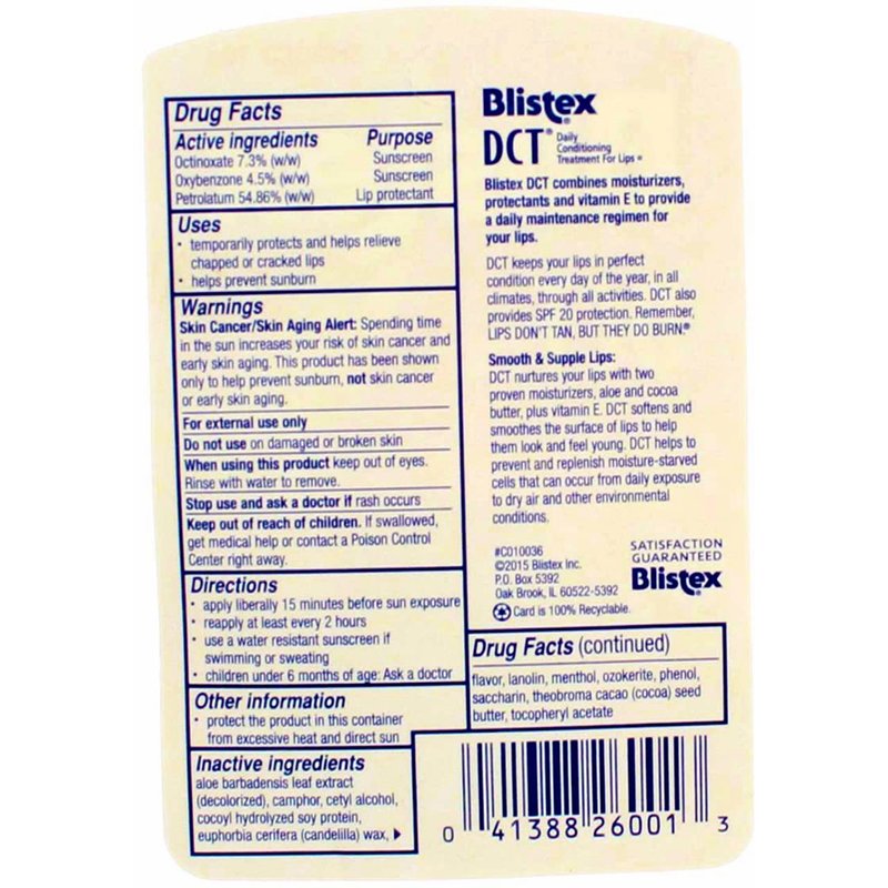 Blistex DCT combines moisturizers and vitamin E to provide a daily maintenance regimen for your lips.