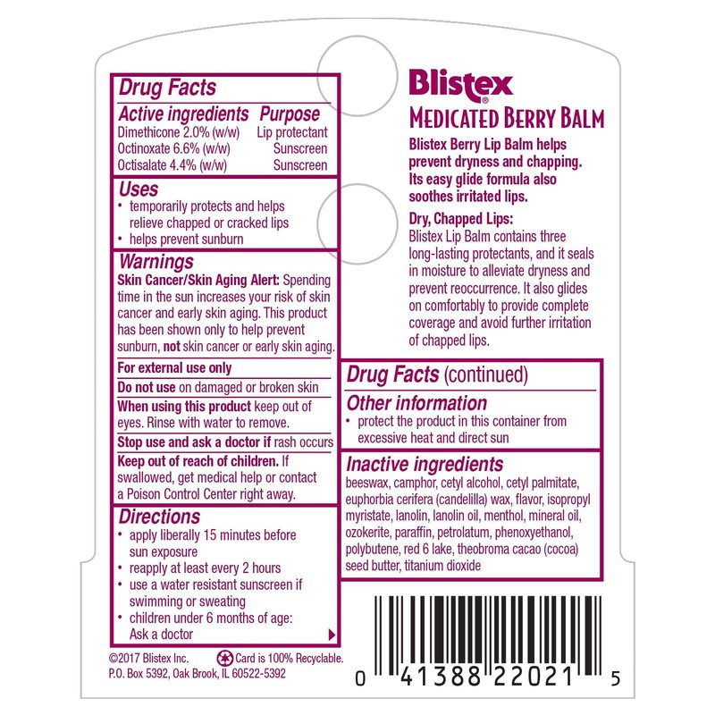 Blistex Medicated Lip Balm, Spf 15, Berry, .15-Ounce Tubes (Pack of 3)