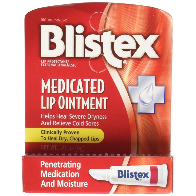 - Blistex Lip Ointment contains four medications to provide relief from the pain, itching and discomfort of lip sores and blisters.