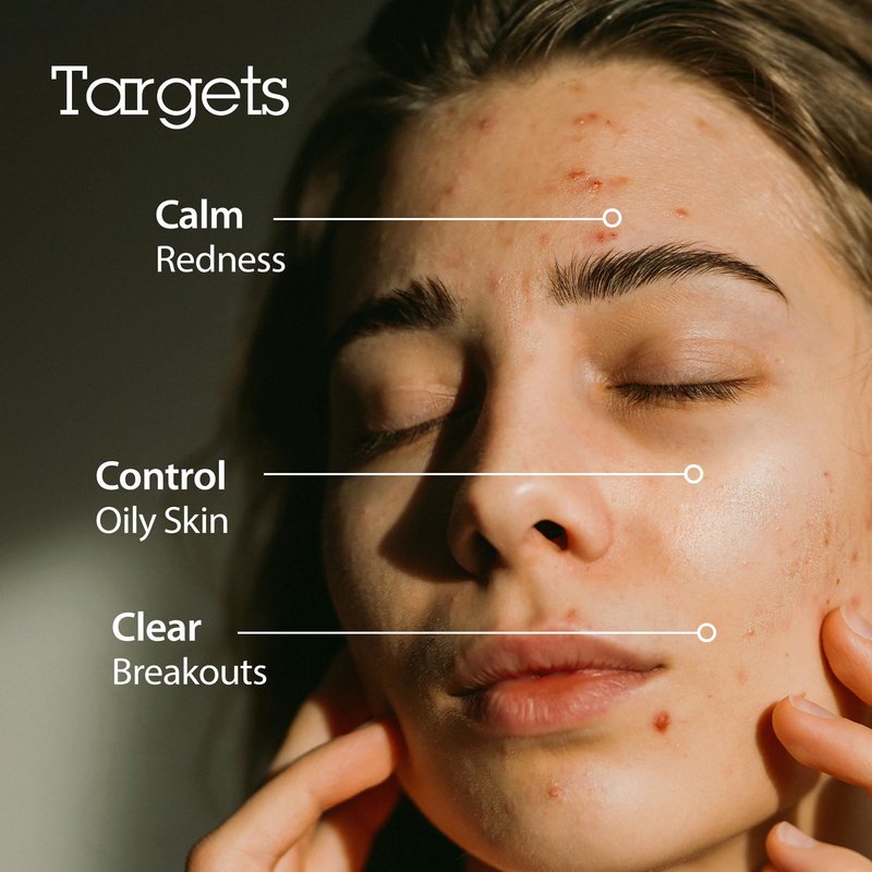 - Soothing Redness Relief – The clear essence is ideal for oily skin as it contains Erythritol which is glucose produced by yeast fermentation that provides a cooling sensation to rosacea and heated skin without causing any iritation. The purifying components of the 6 leaves assist with sebum production and acne control.