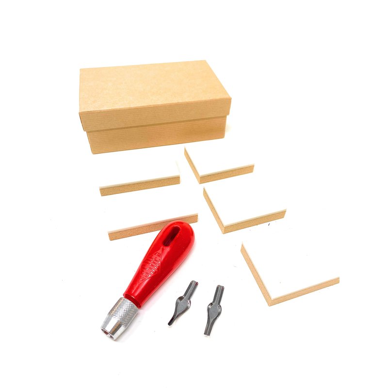 Block Printing Stamp Making Kit || Includes 2 Lino Cutters, Lino Handle, 5 Wood Mounted Blocks, Ink Pad and Leaflet Including Stamp Design || Used in Art, Craft and Carving Stamps || Made from UK