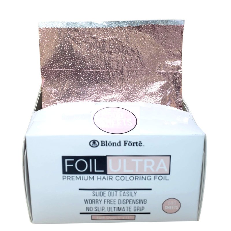 Blond Forte premium hair coloring foil is a professional salon quality hair foil, designed for precision hair highlighting, bleaching, and coloring. Each foil is pre-cut 5x11 sheets that make it easy to grab during color processing. Dispenses easily with the pop up feature, and the clear embossed finish gives it an extra non slip grip. Blond Forte durable aluminum hair foil conveniently pops up from the box without sticking or ripping, which allows for quick time saving application. This hair foil is made for salon professionals and hair colorist. Available Colors: Silver | Gold | Rose Gold Size: 5” x 11”