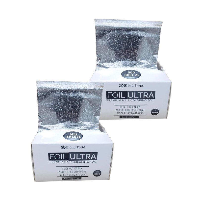 Blond Forte Silver Pop Up Hair Color Foil, Highlight Application Foil, 500 Sheet Dispenser, Coloring Aluminum Hair Foil 5”x11” [ 2 Pack ]