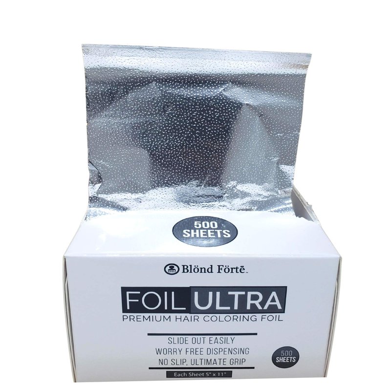 Blond Forte premium hair coloring foil is a professional salon quality hair foil, designed for precision hair highlighting, bleaching, and coloring. Each foil is pre-cut 5x11 sheets that make it easy to grab during color processing. Dispenses easily with the pop up feature, and the clear embossed finish gives it an extra non slip grip. Blond Forte durable aluminum hair foil conveniently pops up from the box without sticking or ripping, which allows for quick time saving application. This hair foil is made for salon professionals and hair colorist. Available Colors: Silver | Gold | Rose Gold Size: 5” x 11”