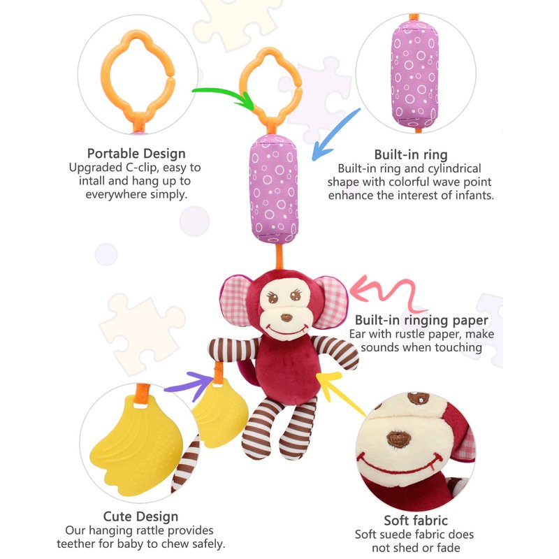 Baby Car Seat Toys, Infant Soft Plush Rattle, Cute Animal Doll,Early Development Hanging Stroller Toys for Newborn Boys Girls Gifts