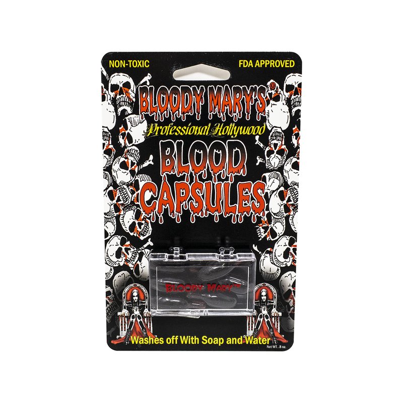 Professional Hollywood Fake Blood Capsules Vampire FX Special Effects Horror Halloween (6 PACK) Professional Hollywood FX Blood Capsules, 6 capsules in an easy to carry pocket-size custom Bloody Mary pillbox. Our blood washes off with soap and water. Will not stain skin! Instructions included. "Always apply makeup before placing the blood capsules in your mouth." Bloody Mary A.K.A Bobbie Weiner is a professional Hollywood special effects makeup artist for the television and film industry. Bloody Mary products are never tested on animals and contain no animal products.
