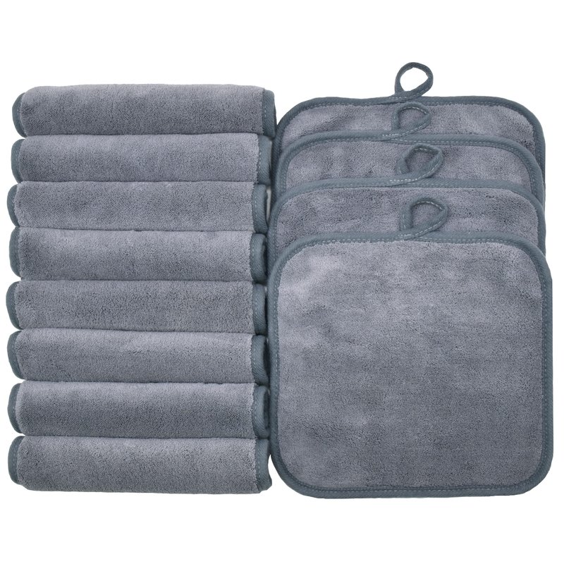 - Microfiber makeup remover cloths: 12 Pack, 8inch x 8inch, Gray .
