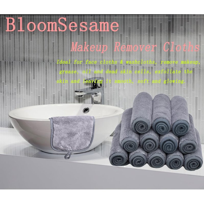 BloomSesame Makeup Remover Cloths for Face, Eye, Lips - Reusable Makeup Remover Pads Soft Microfiber Facial Cleansing Cloths 8 x 8 inch 12 Pack (Gray)