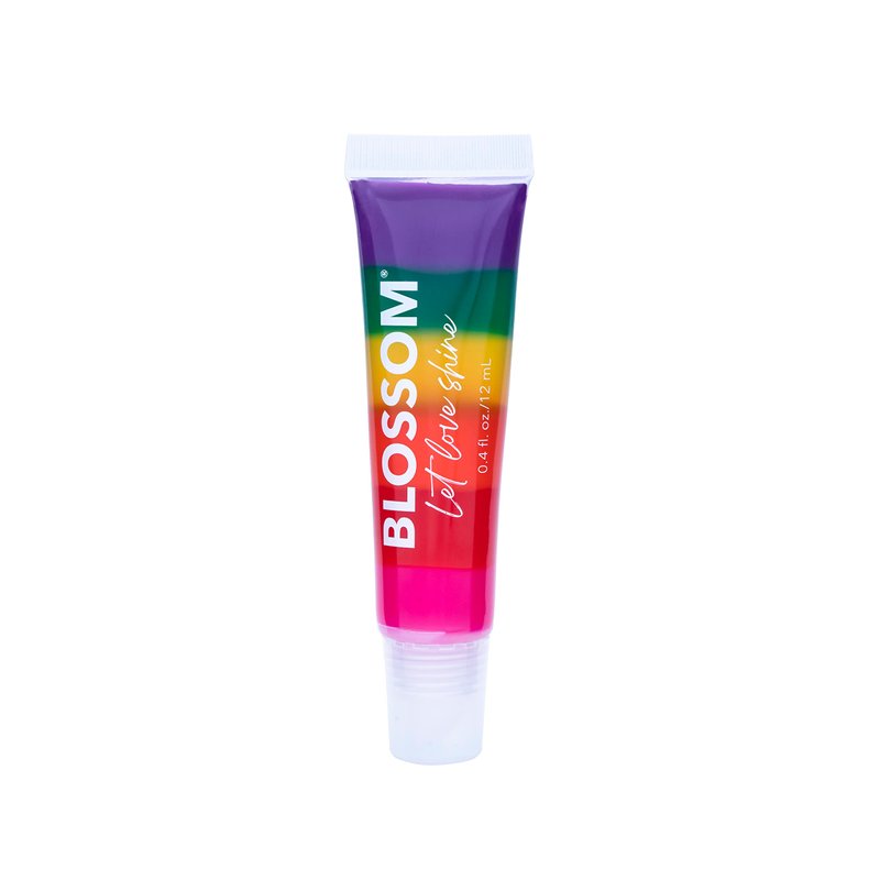 Blossom Moisturizing Tinted Lip Gloss Tubes, Strawberry Scented, Infused with Real Flowers, 0.4 fl. oz/10ml, Let Love Shine Rainbow