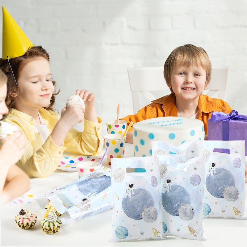 Suitable for filling candy, treats, cookies, cupcakes, chocolates, small toys, party favors, and more, it is widely used in party occasions such as first trip around the sun birthday party, solar system theme party, the space theme party, hello baby shower, hello baby events, baptism baby shower. These gift bags will make your outer space themed party even more impressive