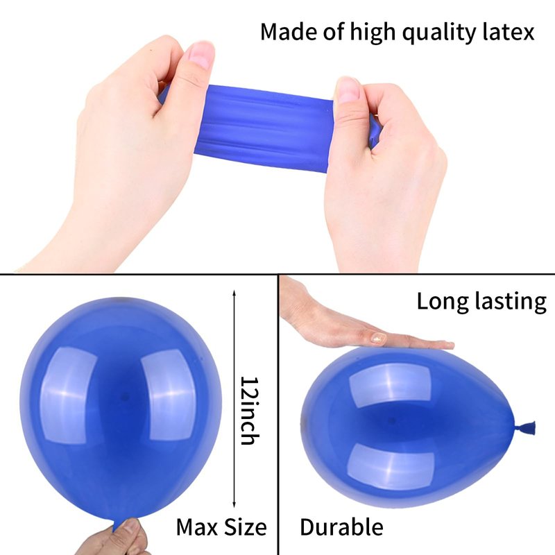 - Material: Our navy blue balloon sets are made of non-toxic and harmless pure natural rubber. Our blue gold balloons are strong and resistant . You can inject helium or air into the balloon without worrying about cracks or bursts after inflating.