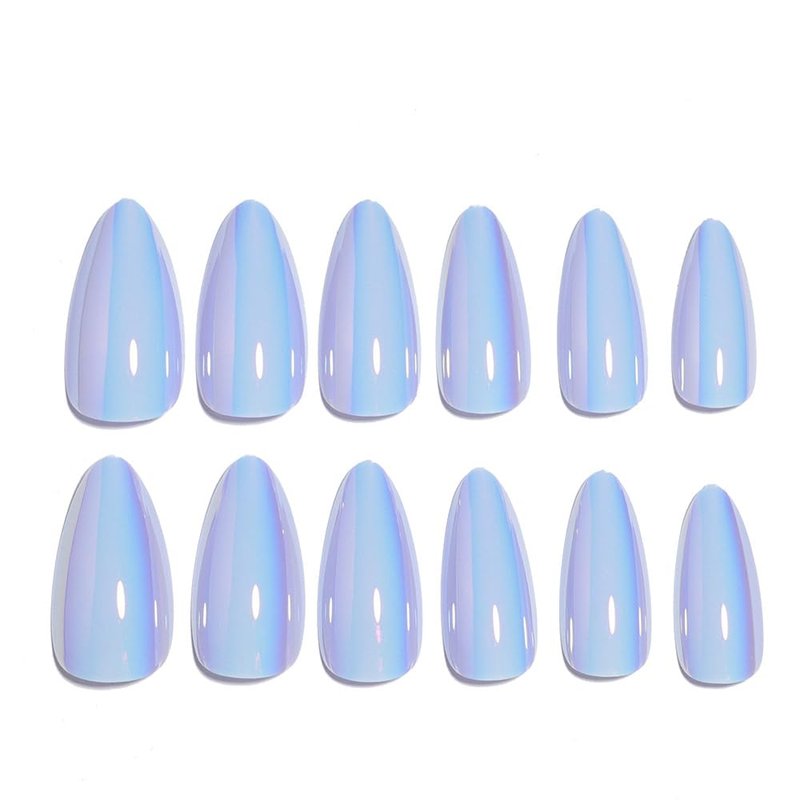 Blue Aurora Press on Nails Medium Almond Long, ...
