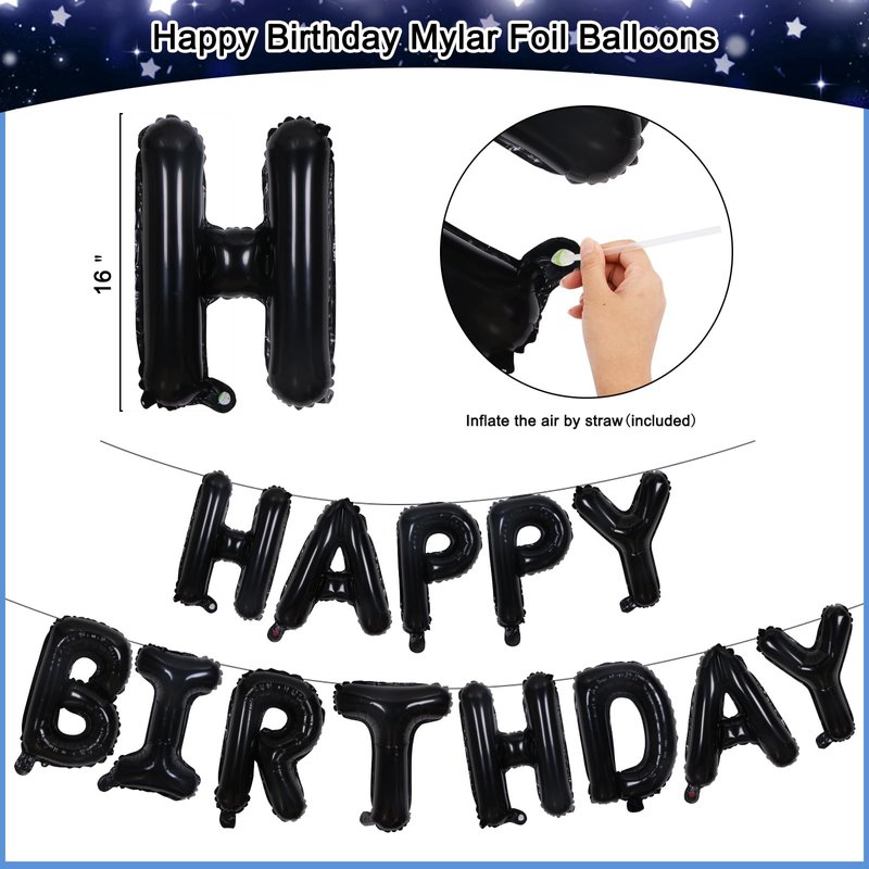 - 🖤Easy to Decorate & DIY by Yourself - Just need 15 minutes and you can create a perfect birthday party! All you need is to inflate the HAPPY BIRTHDAY balloons and the latex balloons to make a balloon garland arch. It comes with small tools to make it easy. The hanging swirls and birthday pattern card are separate but also easy to assemble. Let’s DIY your unique birthday party.
