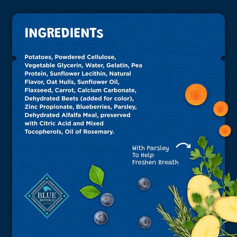 - Contains One 12-oz bag of BLUE Dental Bones Natural Adult Dental Chew Dog Treat, Mini